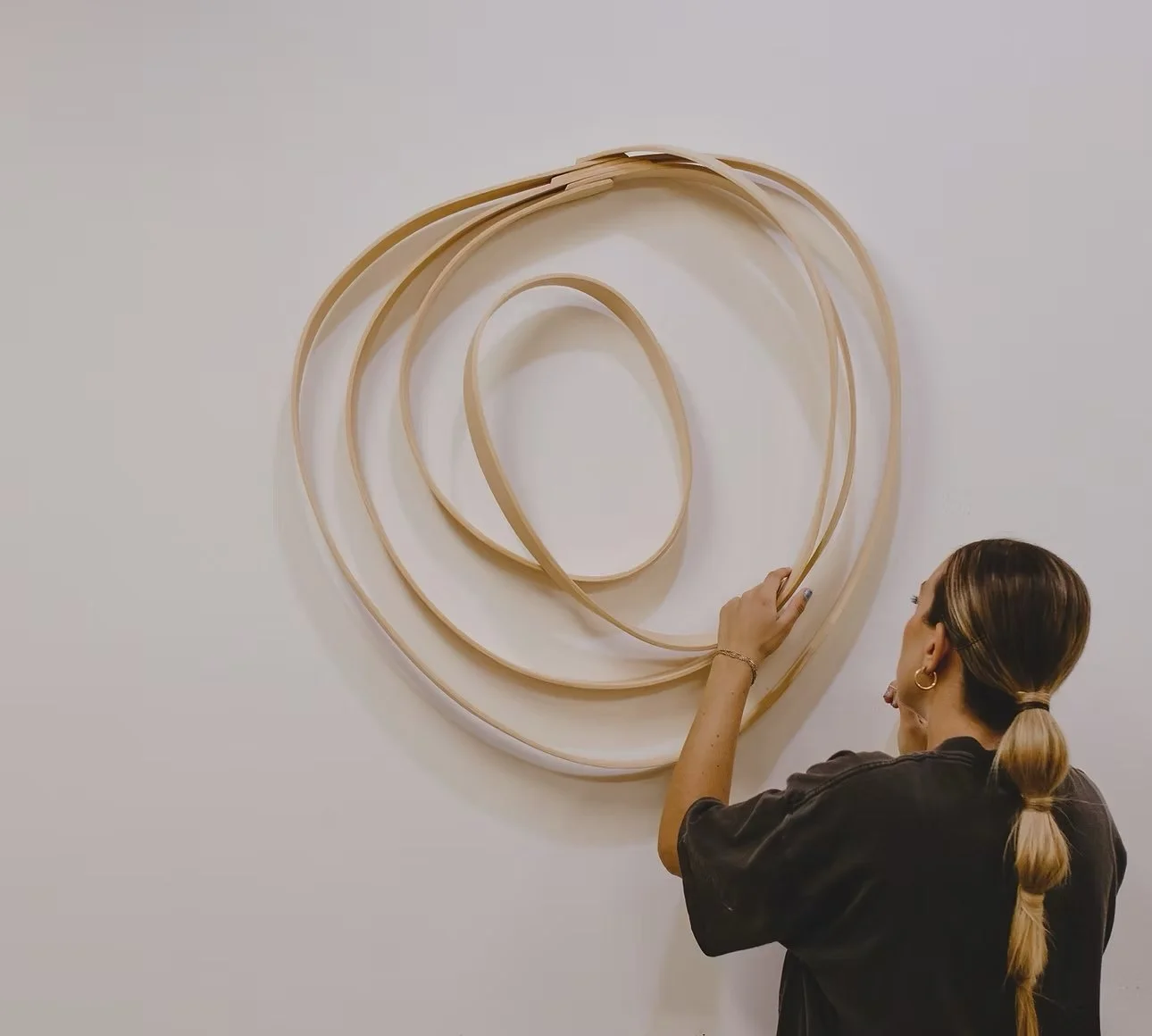 Heather Zusman’s wood sculptures have gained recognition for their minimal form that features the natural color and texture of the wood grains. Influenced by traditional woodworking practices and design motifs found in Art Nouveau and the Arts & Craft Movement, Zusman's sculptural works are simple in form and purposeful in detail. She fearlessly pushes her medium to the brink: creating intricate compositions that bend, curve, and swell, casting shadows on the wall.